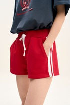 Бриджи с отрезным поясом и широкой резинкой на кулирке. Боковой карман в отрезном бочке. По низу манжет.