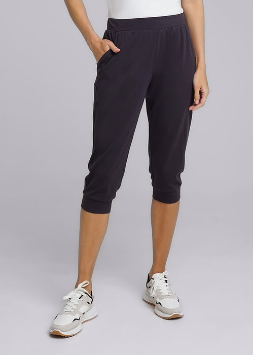 Бриджи женские из плотного эластичного трикотажного полотна. Отрезной пояс. Карманы в бочках. По низу манжеты.