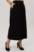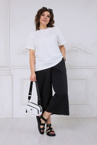 Брюки прямые, широкие из текстильного полотна штапель-креп. По талии притачной пояс на резинке с завязками из основного полотна.