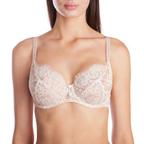 Бюстгалтер с формованной чашкой без push-up, со съемными бретелями и силиконовой лентой с внутренней стороны пояса бюстгалтера. По верху чашки модель декорирвана кружевом.