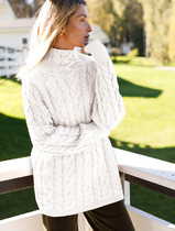 Vilatte Удлиненный свитер фактурной вязки с узором косы D34.188 натуральный белы