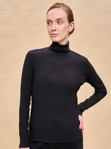 Вязаный джемпер умеренного объема из акриловой пряжи с добавлением шерсти, переплетение гладь (изнаночные петли). Спущенный длинный рукав, округлая горловина с бейкой. По низу изделия и рукавов широкие манжеты. По бокам разрезы.