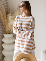 Джемпер из трикотажного полотна джерси фактурное, свободного кроя. Округлая горловина с обтачкой. Длинный рукав со спущенной линией плеча, по низу манжеты. По переду декоративные защипы. По низу изделия манжет с боковыми разрезами.