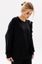 Джемпер из трикотажного полотна с эластаном- кулирная гладь. Втачной короткий рукав. Двойной перед. Фигурный вырез горловины.