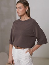 Vilatte Свободный джемпер с рукавом 3/4 тонкой вязки из вискозы D39.403 кофейный