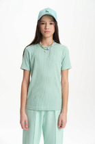 Свободная футболка из хлопка с эластаном, дополненная трендовым принтом отлично впишется в твой летний гардероб. Горловина оформлена эластичной окантовкой.