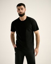 Свободная мужская футболка oversize из фактурного ""пике"" в составе с хлопком. Изделие с круглым вырезом горловины, со спущенной линией плеча и удлиненным рукавом, дополнено принтом по груди и жаккардовой нашивкой. Модель для тех, кто любит свободный стиль в одежде.