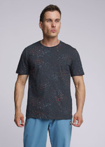 Футболка мужская из хлопкового полотна (флам) с декоративной планкой и пуговицами, дополнена лаконичным принтом. Отличный вариант на каждый день.