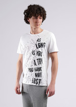 Футболка свободного кроя с круглым вырезом горловины и коротким рукавом. Модель выполнена из трикотажного хлопкового полотна. Изделие дополнено дизайнерским принтом. Универсальная вещь мужского гардероба на каждый день.