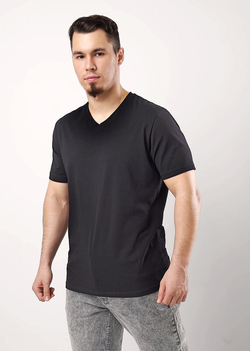 Фуфайка базовой посадки, v-образный вырез горловины, короткий рукав.