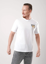 Футболка мужская с округлой горловиной и планкой из фактурного полотна ""флам"". Данная модель прекрасно комбинируется с джинсами или шортами. Отличное решение на лето для прогулок с друзьями или поездки на отдых.