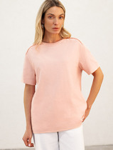 Джемпер оверсайз из хлопкового трикотажного полотна. Короткий спущенный рукав. Круглый вырез горловины обработан рибаной. По переду принт вспенкой.