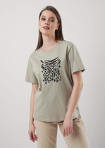 Футболка из хлопкового трикотажного полотна, прямого силуэта. Короткий втачной рукав. Округлая горловина с обтачкой. По переду принт.
