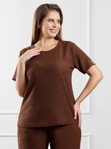 Джемпер умеренного объема из хлопкового трикотажного полотна -рибана. Втачной короткий рукав. Округлая горловина с окантовкой.