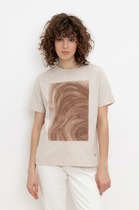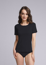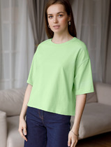 Базовая, малообъемная футболка из трикотажного, эластичного полотна. Округлая горловина, втачной рукав. Модель без боковых швов