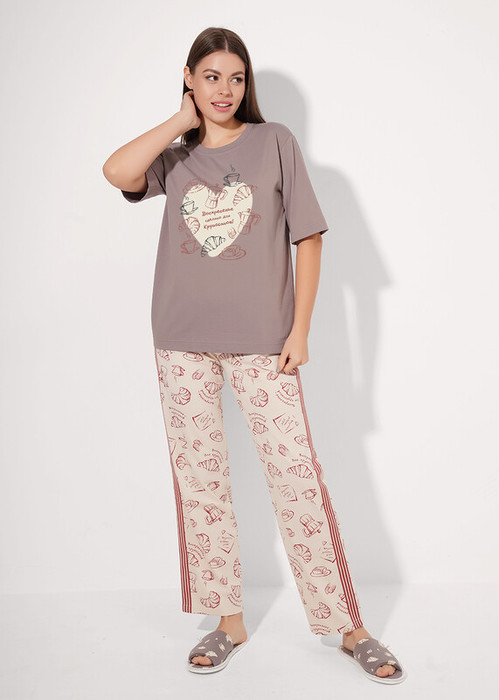 25.03 Clever Комплект женский для домаCLE LP26-1211/4 кофейный/св.бежевый