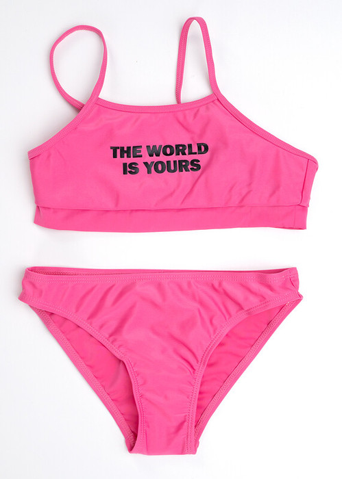 Раздельный купальник из 2х предметов. Плавки классические на подкладе впереди. Топ с принтом на регулирующихся бретелях с подкладом впереди.
