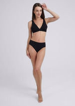 Костюм купальный женский однотонный из полиамида с эластаном, лиф с треугольными чашечками на регулируемых бретелях с магнитной застежкой, трусы бикини с высокой посадкой.