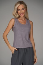 Майка из хлопкового трикотажного полотна кашкорсе. Умеренный объем. Узкая бретель, округлая горловина. По горловине и пройме окантовка. Производство Узбекистан.