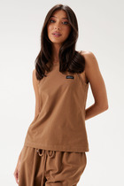 Майка из хлопкового трикотажного полотна рибана. Умеренный объем. Широкая бретель, округлая горловина. По горловине и пройме окантовка.