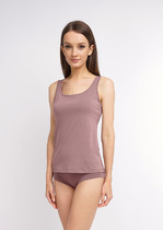 Майка из однотонного трикотажного полотна модал, с круглым вырезом горловины. Широкая бретель. Изделие очень легкое и комфортное в повседневной носке.