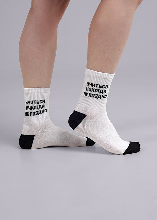 однотонный носок с надписью на паголенке