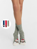 детские носки с выделенным мыском, пяткой и бортом, с рисунком лицо деда мороза и надписью удачи в новом году