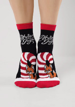 Носки женские с рисунком ""большая конфета с лисичкой"" и надписью ""С Новым годом!""
