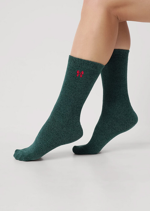 мягкие женские новогодние носки с вышивкой