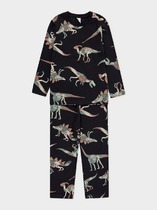 Комплект хлопковой пижамы из футболки и брюк. Футболка свободного кроя со спущенным плечом, спереди украшенная милым тематическим принтом. Брюки среднего объема, эластичный пояс обеспечит комфорт и идеальную посадку. По низу брюк эластичные манжеты.