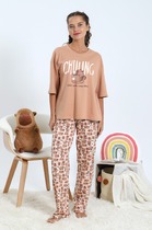 Clever Пижама женская CLE LP15-1181 св.бежевый/коричневый