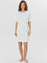 Набор одежды из трикотажного полотна.Футболка с коротким втачным рукавом,отворотом и закрепкой. По горловине обтачка.Спереди принт, нашивка в боковом шве. Брюки с поясом на резинке и киперной лентой. Боковые карманы с отрезным бочком. Внизу брюк резинка.