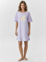 Пижама из хлопкового трикотажного полотна с эластаном. Майка прямого кроя на бретелях. По горловине ажурная резинка, бант. По пройме окантовка. Короткие шорты свободного кроя, цельнокроеный пояс на внутренней резинке.