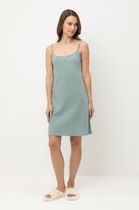 Пижама для дома из эластичного хлопкового полотна. Майка умеренного объема. Узкая бретель, округлая горловина,по горловине,пройме окантовка. Короткие шорты свободного кроя, цельнокроеный пояс на внутренней резинке. Спереди имитация гульфика.