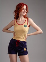 Пижама для дома и отдыха из вискозного трикотажного полотна кашкорсе лапша.Майка прилегающего силуэта. Спереди по горловине кружево, по спинке обтачка.По пройме узкая обтачка. Шорты по талии пояс на внутренней резинке. По низу майки и шорт узкий оверлок.