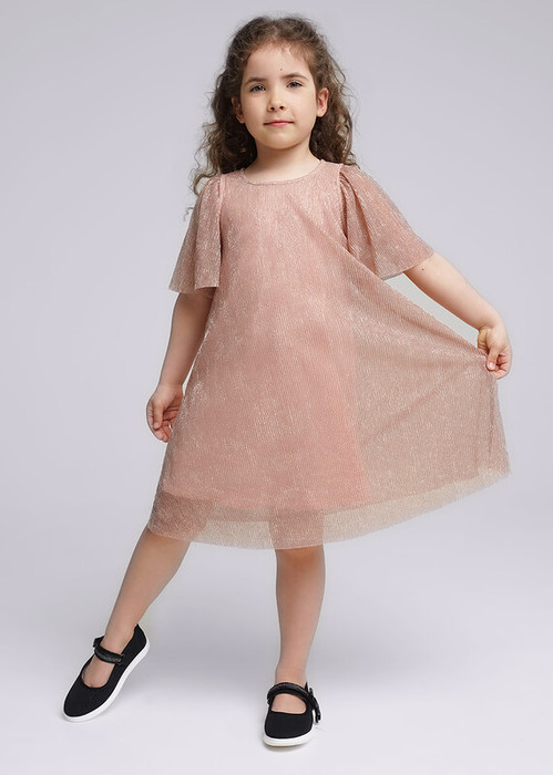 В праздничном платье с золотистой сеткой ты будешь сиять ярче звезд! Расклешёный силуэт и пышные рукава не сковывают движений. Подкладка выполнена из мягкого хлопкового трикотажа, верхний слой - воздушная плиссированная сетка.