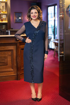 Платье прямого силуэта из трикотажного полотна, длиной ниже колена. Короткий втачной рукав. Округлая горловина с обтачкой. По бокам разрезы.