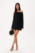 Бархатное платье простого покроя, расклешённое книзу с втачным рукавом длиной 3/4. По спинке застёжка на пуговицу.