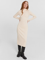 Платье без рукавов из фактурного трикотажного полотна джерси, длиной ниже колена. По горловине и пройме внутренняя окантовка. Отрезное по линии талии, боковые вставки со сборкой. По плечу завязки из окантовки. По спинке средний шов.