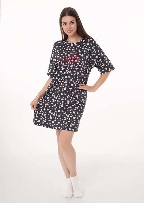 25.03 Clever Платье женское для домаCLE LDR15-1187/1 т.серый/св.серый