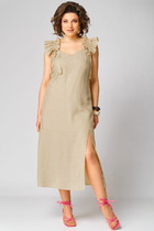 Сарафан из тканого полотна лен с вискозой,свободного кроя отрезной под линией груди со сборкой. Широкие бретели, квадратный вырез, длина миди.