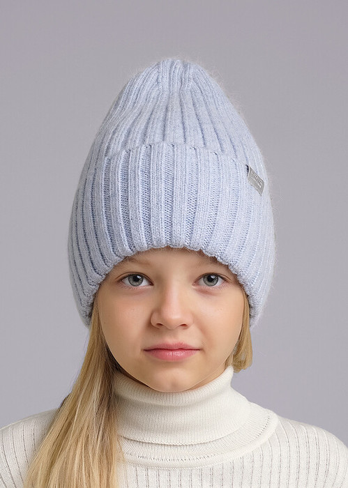 Шапка детская, связаная ластичным переплетением из пряжи с содержанием АНГОРЫ. Дополнительное утепление - флис.
