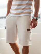 Модные пляжные шорты комфортной посадки из быстросохнущего полотна с контрастными вставками. Изделие дополнено декоративным гульфиком и лаконичным принтом по карману.