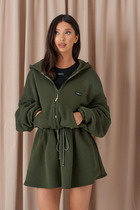 Куртка спортивная прямого силуэта из трикотажного полотна флис, на молнии. По горловине стойка. Спереди горизонтальный рез, карманы на молнии. Длинный рукав со спущенной линией плеча, нашивка.По низу рукава и низа изделия окантовка. Спереди вышивка.