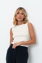 Майка топ укороченная из трикотажного полотна кашкорсе лапша с эластаном. Средняя ширина бретели. Округлый вырез горловины. По горловине, пройме окантовка. По низу изделия внутренняя резинка, по центру жаккардовая нашивка.