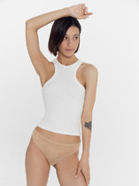 Трусы бикини женские, спереди из эластичного хлопковго полотна, по спинке эластичная сетка. Обработка краев по талии - окантовкой, по ноге - узким кружевом. Хлопковая ластовица.