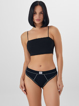 Трусы бикини женские из эластичного хлопкового полотна. Обработка краев по талии - резинка с кантом, по ноге - полуокантовка. По переду атласный бант.
