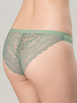 Трусы бикини женские из эластичного хлопкового полотна. Обработка краев - ажурная резинка с фестоном. Спереди бант и вставки из кружева.