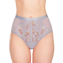 Бикини комфортной посадки из хлопкового полотна с добавлением эластана. Модель с отрезным бочком из кружева. По талии обработка сеткой и ажурной резинкой, по ножке со стороны переда-полуокантовка, со спинки - обработка сеткой, с заходом на деталь переда.