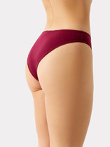Трусы бразилиана женские из эластичного хлопкового полотна. Обработка краев по талии - ажурная резинка, по ноге - подгибка. По переду атласный бант.